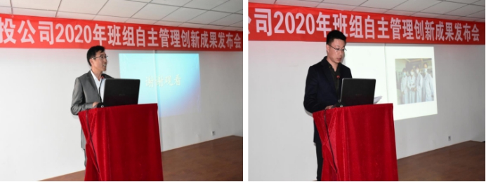 發(fā)布會(huì)上,發(fā)布人員向與會(huì)人員從成果的項(xiàng)目背景、創(chuàng)新原因和目的、項(xiàng)目目標(biāo)、實(shí)施方案、創(chuàng)新特點(diǎn)、效益分析及推廣情況幾個(gè)方面運(yùn)用PPT的形式,詳細(xì)介紹了班組自主創(chuàng)新成果。