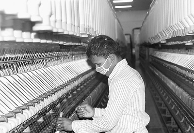 天利紡紗(毛里求斯)有限公司紡紗廠(chǎng)的外籍員工在工作。 本報(bào)記者 倪 濤攝
