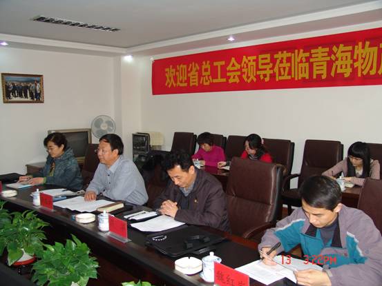 2012年12月13日下午,省總工會第六考核組組長、省總副巡視員兼法律保障部部長李忠云、考核組成員、省總機(jī)關(guān)黨委專職副書記呂華、考核組成員、省總組織部副調(diào)研員姬紅捷、考核組成員、省總經(jīng)濟(jì)部魏紅巖一行蒞臨青海物產(chǎn)集團(tuán),對物產(chǎn)工會2012年度工作開展情況進(jìn)行考核。
