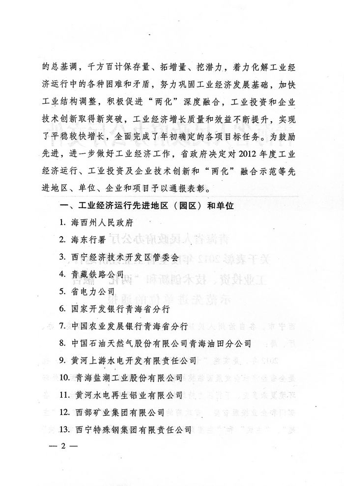 集團榮獲2012年度青海省人民政府“工業(yè)投資貢獻獎”