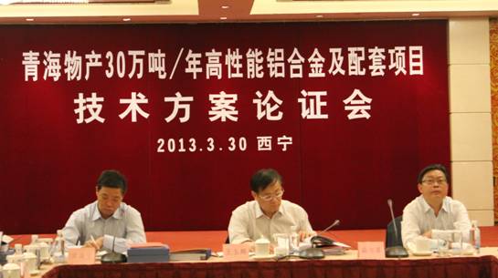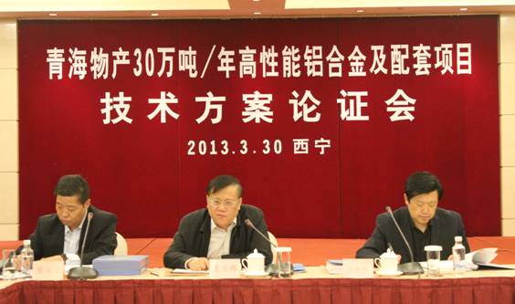 青海物產工業投資有限公司30萬噸/年高性能鋁合金及配套項目技術方案論證會于2013年3月30日-31日在青海西寧召開,省物產集團總公司總經理王玉輝、黨委書記白家林、北川工業園管委會副主任薛萬革、鋁合金、炭素行業的9位特邀專家,物產工投高級經濟師常海寧、西北鋁高級工程師張學平、瑞敏教授級高工黃金法、云南云鋁高級工程師車立志、東方希望教授級高工王堅、青海鑫恒高級工程師王雄、青海黃河再生鋁高級工程師陳蒲明、甘肅索通炭素高級工程師陳衛國、物產工投高級工程師薛玉貴、貴陽鋁鎂設計研究院黨委書記呂維寧、副院長寧前進、沈陽鋁鎂設計研究院副院長劉敬及相關主設人員、項目建設單位代表等共53人參加了會議。專家委員會推選由常海寧擔任主任委員、張學平擔任副主任委員。